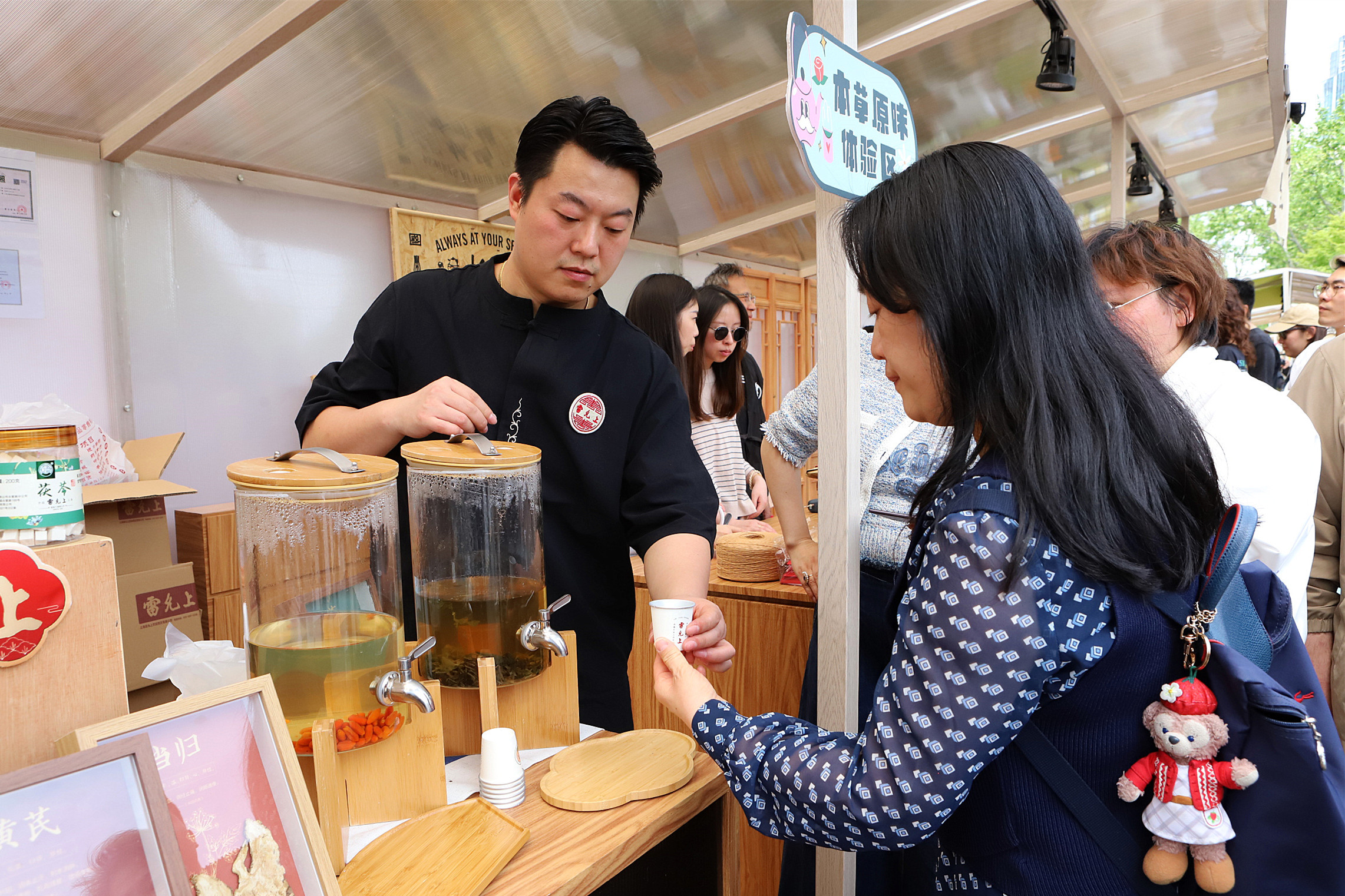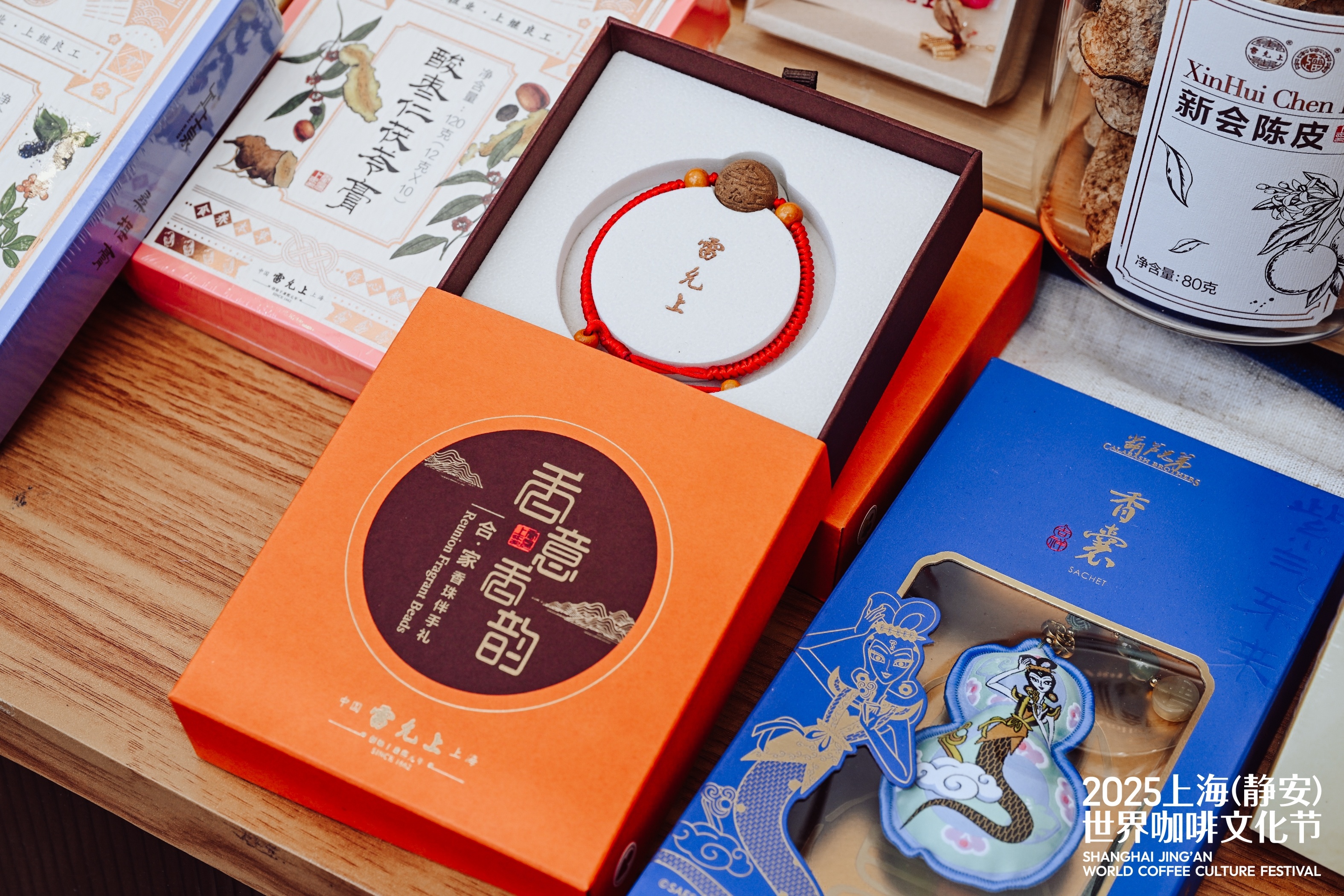 除了味觉创新,“雷允上”旗下文创品牌“允上生活”带到的咖啡文化节主会场市集的限定款“布一样的香囊”同样吸睛。