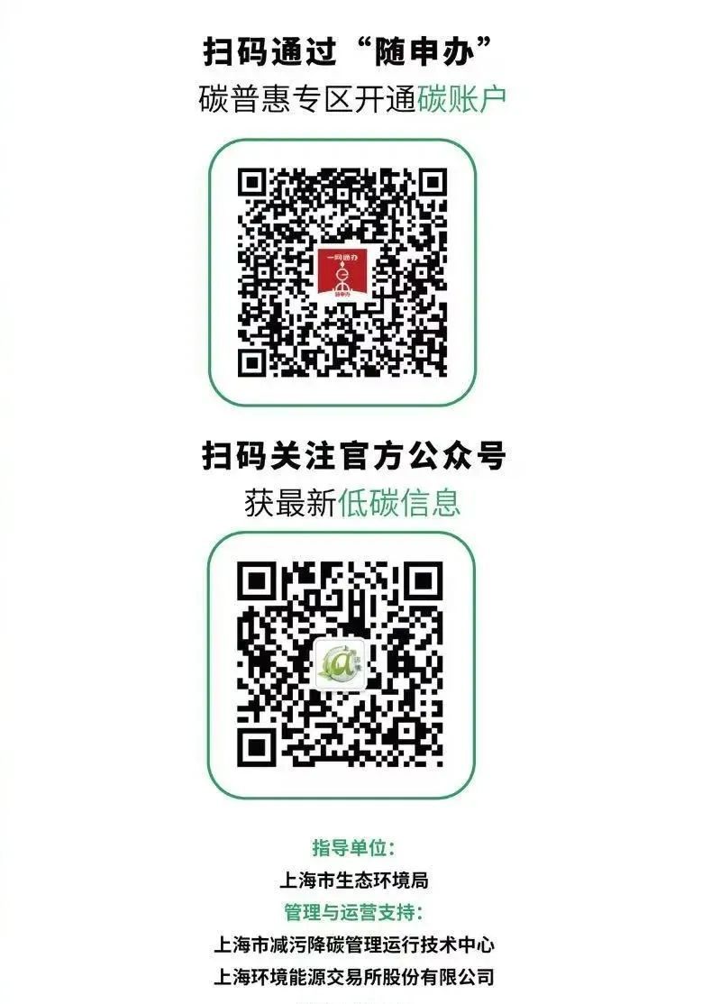 碳普惠作为推动建立绿色低碳生产生活方式的正向激励机制,让公众在践行低碳理念中有了更多获得感,为企业低碳发展增添了新动力!欢迎扫码进入“随申办”市民云碳普惠专区参与上海碳普惠,了解碳普惠相关资讯。