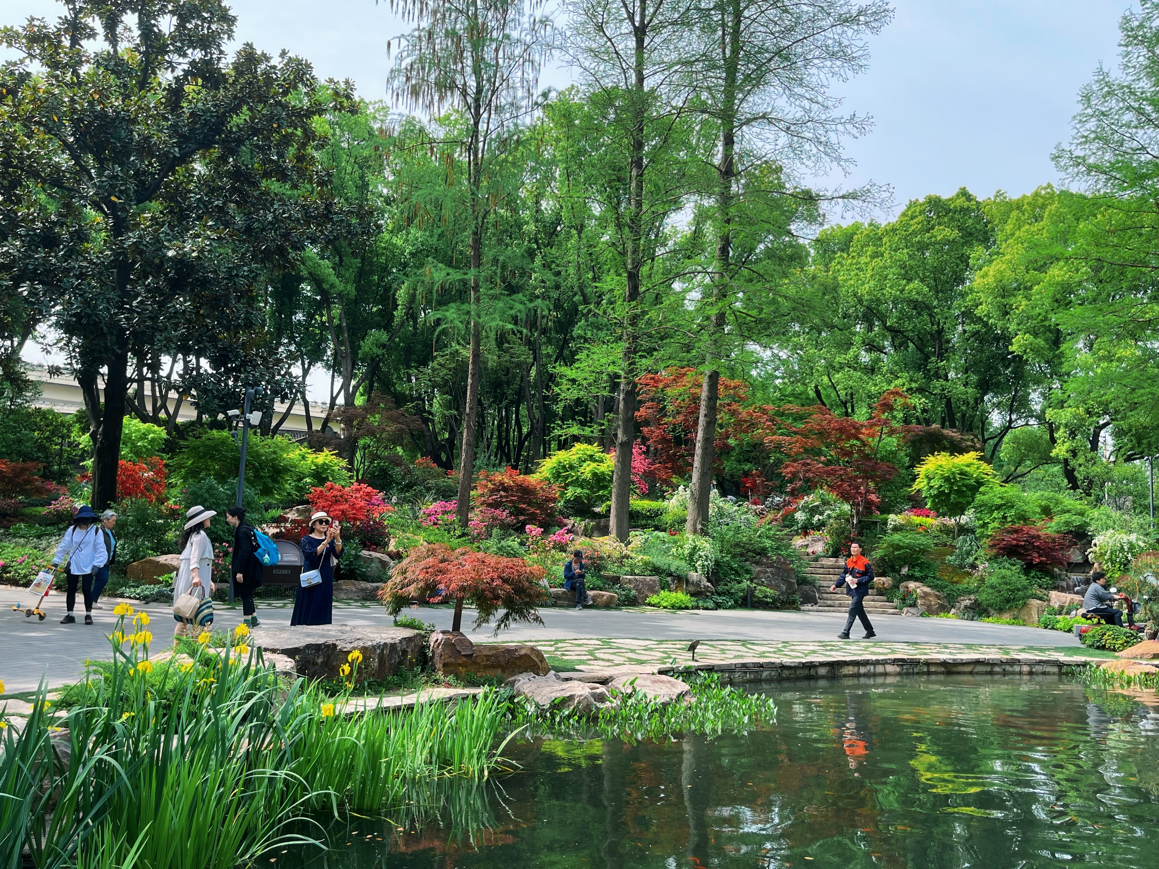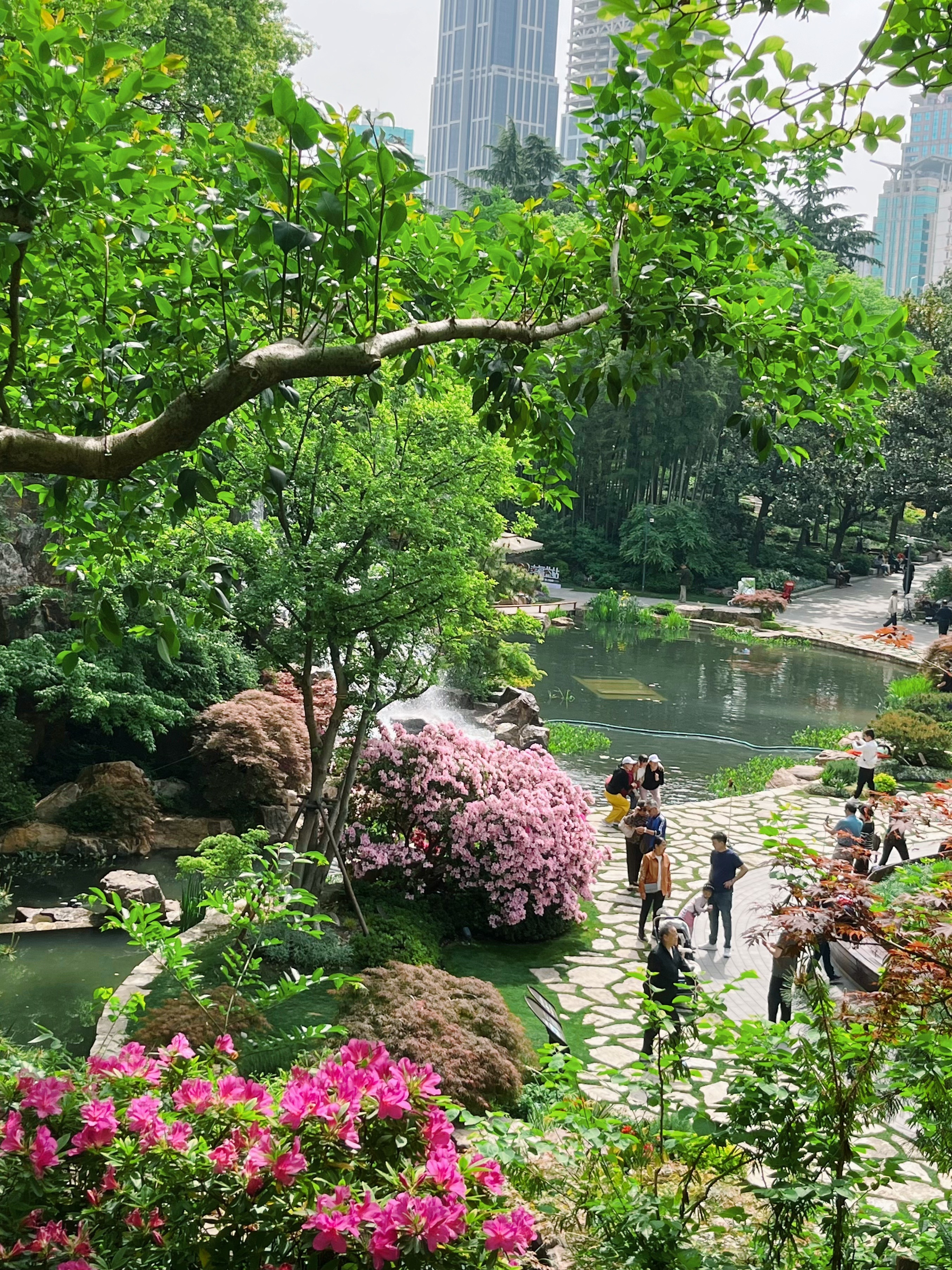 在“红霞芳菲”的山坡上,在“四时锦绣”的水边,在“瑶台烟云”的崖壁上,在“翠林浸染”的竹林间,在“朝花夕拾”的岩石间,杜鹃化作明艳的油彩,此情此景让宋代诗人杨万里笔下杜鹃“何须名苑看春风,一路山花不负侬”的诗情画意在上海市中心走入了现实。