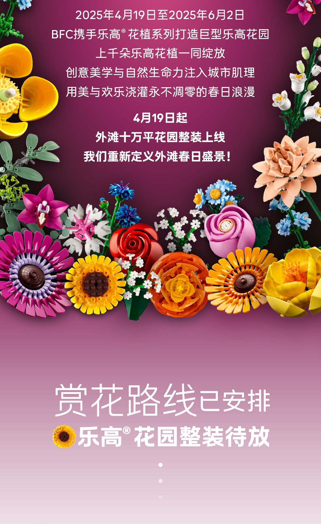 周末来外滩花市漫游,解锁外滩畔的治愈系生活!多家国内园艺品牌集结,打造外滩边的绿洲盛宴;春日花园艺术打卡点,定格你的春日美学大片;自然野趣的下午茶空间,让饮品与鲜花共舞......当乐高花园遇上外滩花市,缤纷花卉与像素艺术交织绽放,让生活乐开了花