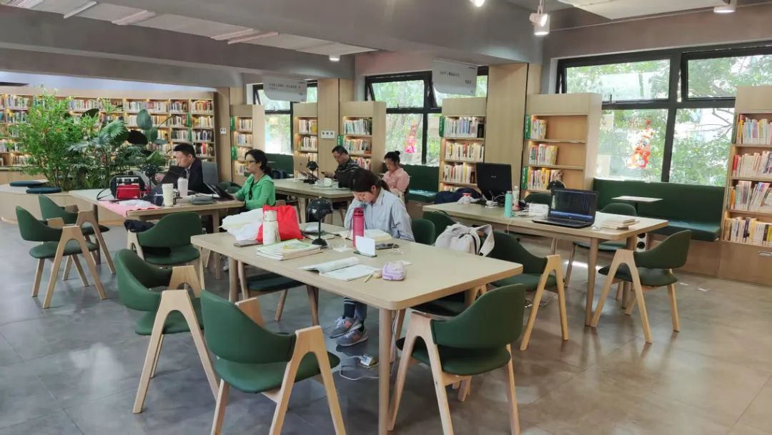 10点半,曹家渡街道图书馆的二楼,顾女士正捧着一本散文集沉浸其中,“平时上班忙,就爱找个安静角落看看书。”