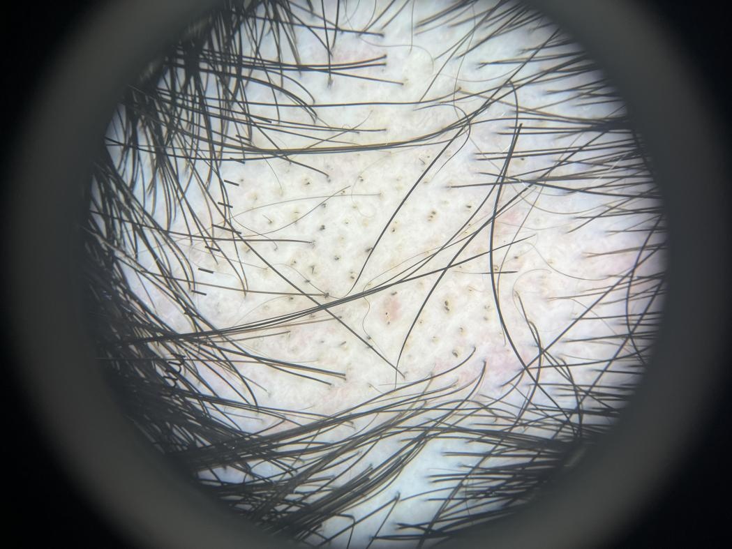 在斑秃的诊断过程中,皮肤镜检查扮演着关键角色,它不仅有助于确诊,还能用于区分其他脱发类型,以及评估病情的活动程度。在受影响的脱发区域,毛囊开口仍然保持完整,皮肤镜下可观察到特征性的表现,如感叹号样发、黑点征、黄点征和锥形发等。特别是感叹号样发,它被认为是斑秃的一个典型皮肤镜特征。