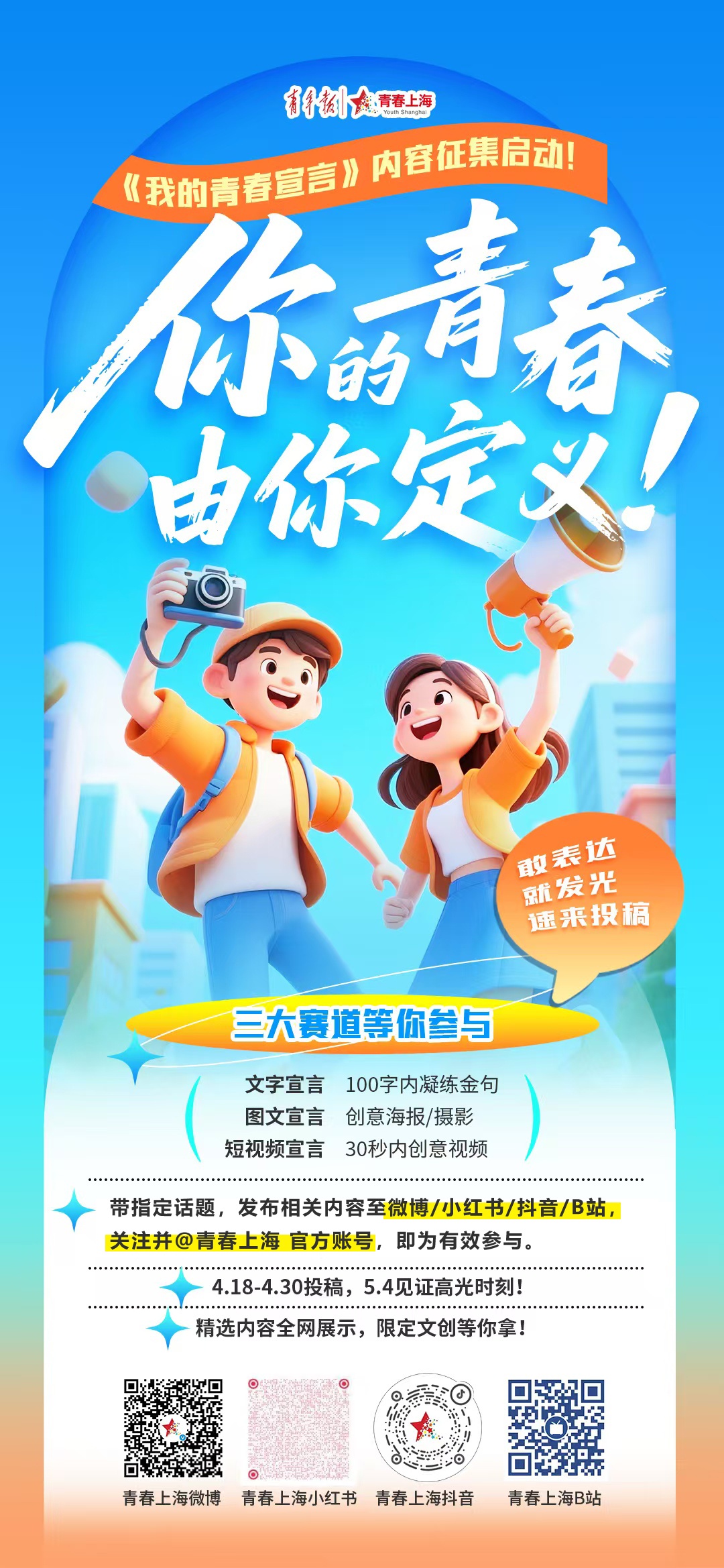 关注并@青春上海 官方账号