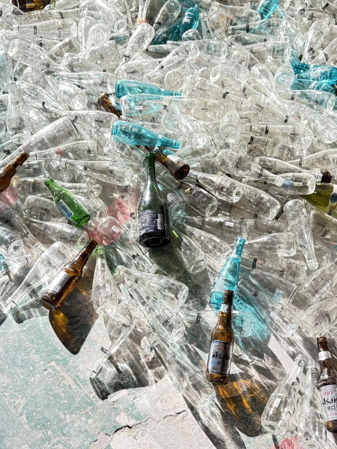 但实际操作过程中却遇到了一些困难。比如春天的主题,就回收绿色的酒瓶,但实际回收来的玻璃大部分是透明的,有水壶、玻璃瓶、碎杯子、碎酒瓶等,甚至酒瓶里还有残留的酒渍。