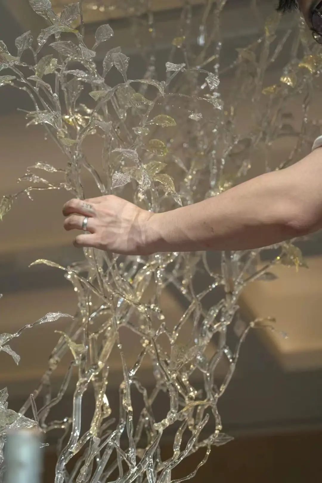 玻璃制作的工艺很难,而且因为是大型公共艺术装置,要考虑会不会对游客产生伤害。苦思冥想之后,他决定将电镀和电铸珠宝工艺运用到玻璃创作中。将铜附着在玻璃表面进行保护,相当于给玻璃穿上了一身“盔甲”,和其脆弱的属性形成反差。