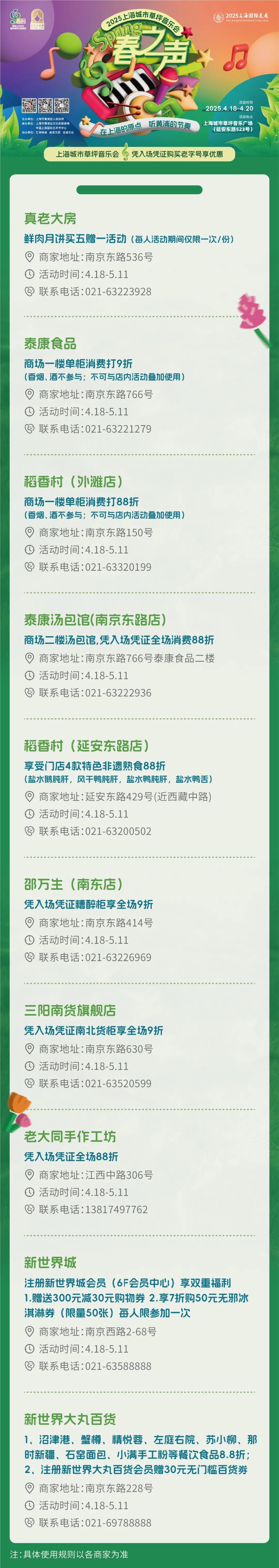 这场春日的旋律不仅带来城市原点的回响,也化身舌尖上跳动的音符,奏响城市街头巷尾的美好。本次活动期间,新世界集团集结旗下老字号品牌,为草坪音乐会的观众推出专属福利,凭入场凭证即可解锁多重优惠体验。这场由艺术舞台走向烟火日常的自然延展,让“票根”如春风般打通行业“结界”,为市民游客们解锁春日暖阳里的升级体验。