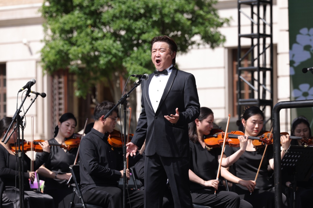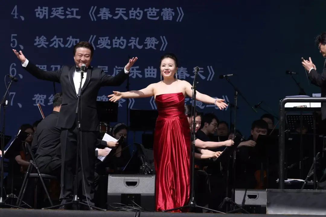 4月18日下午,江苏交响乐团在上海城市草坪音乐广场这座“没有穹顶的大剧院”率先奏响春的乐章。作为2025“春之声”的首场演出,本场“世界名曲音乐会”的曲目可谓风格多样——既有施特劳斯的《春之声圆舞曲》和《蓝色多瑙河圆舞曲》带来维也纳的浪漫气息,又有如《舞曲》这般具有独特的戏剧风格;中国经典《金蛇狂舞》则以热烈奔放的节奏点燃全场,男中音和女高音的加入让演出形式更加多元;当《我的中国心》熟悉的旋律响起,全场观众自发合唱,将气氛推向高潮。