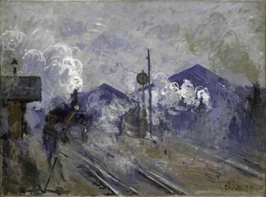 首先,让我们跟随莫奈来到圣拉扎尔火车站,抵达巴黎。蒸汽火车是现代技术的第一个奇迹,它彻底改变了人们对距离的看法,改变了人们的生活方式。圣拉扎尔火车站是巴黎6个大型火车站之一,在欧洲最繁忙的火车站中排名第二。在“印象派”大爆发的1870年代,圣拉扎尔火车站是巴黎的中心区之一,它独特的城市景观,吸引了求新求变的印象派艺术家们,更因为莫奈的系列画作成为艺术史上的永恒意象。