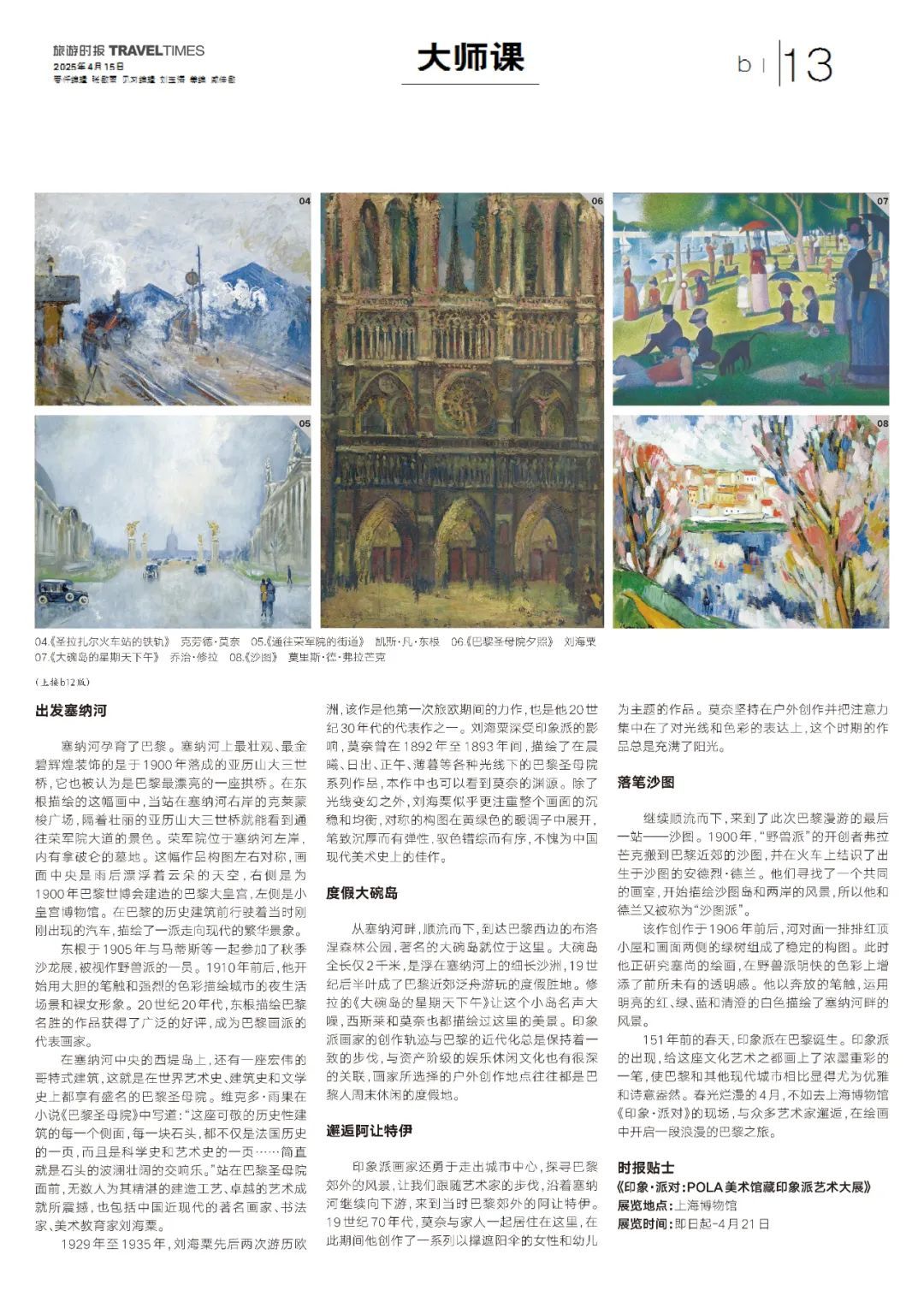 《印象·派对:POLA美术馆藏印象派艺术大展》正在上海博物馆东馆火热展出中,并将于2025年4月21日落下帷幕。本次展览以36位艺术家的69件艺术精品呈现了一场百余年来追逐光与影的艺术盛宴。这也是上海博物馆首次全景式地呈现印象派的开端、发展与兴盛的历程,以及对现代艺术广泛而持久的影响。本期大师课让我们跟随这些艺术家的踪迹,走进特展,一起在绘画的光影中感受19-20世纪之交的现代巴黎。