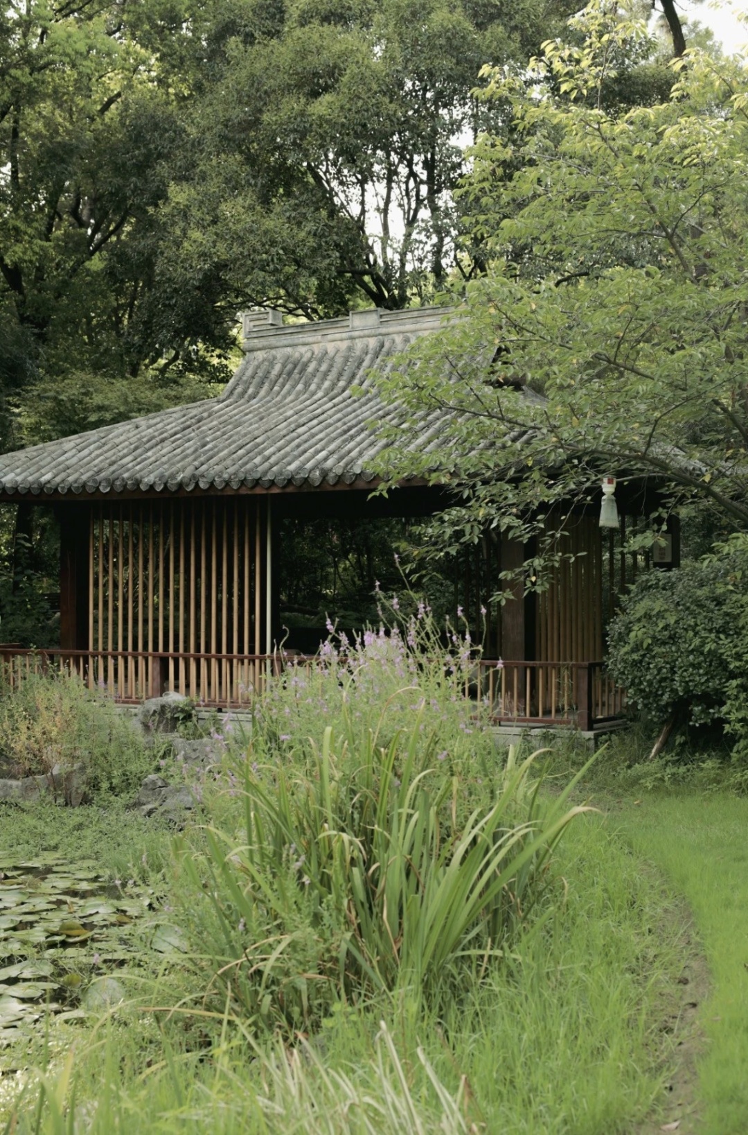 园内的打卡点非这座小竹亭莫属。屋顶的瓦砾历经岁月洗礼,竹面斑驳陈旧,每一处痕迹都在诉说着往昔的故事,散发着浓郁的年代气息。