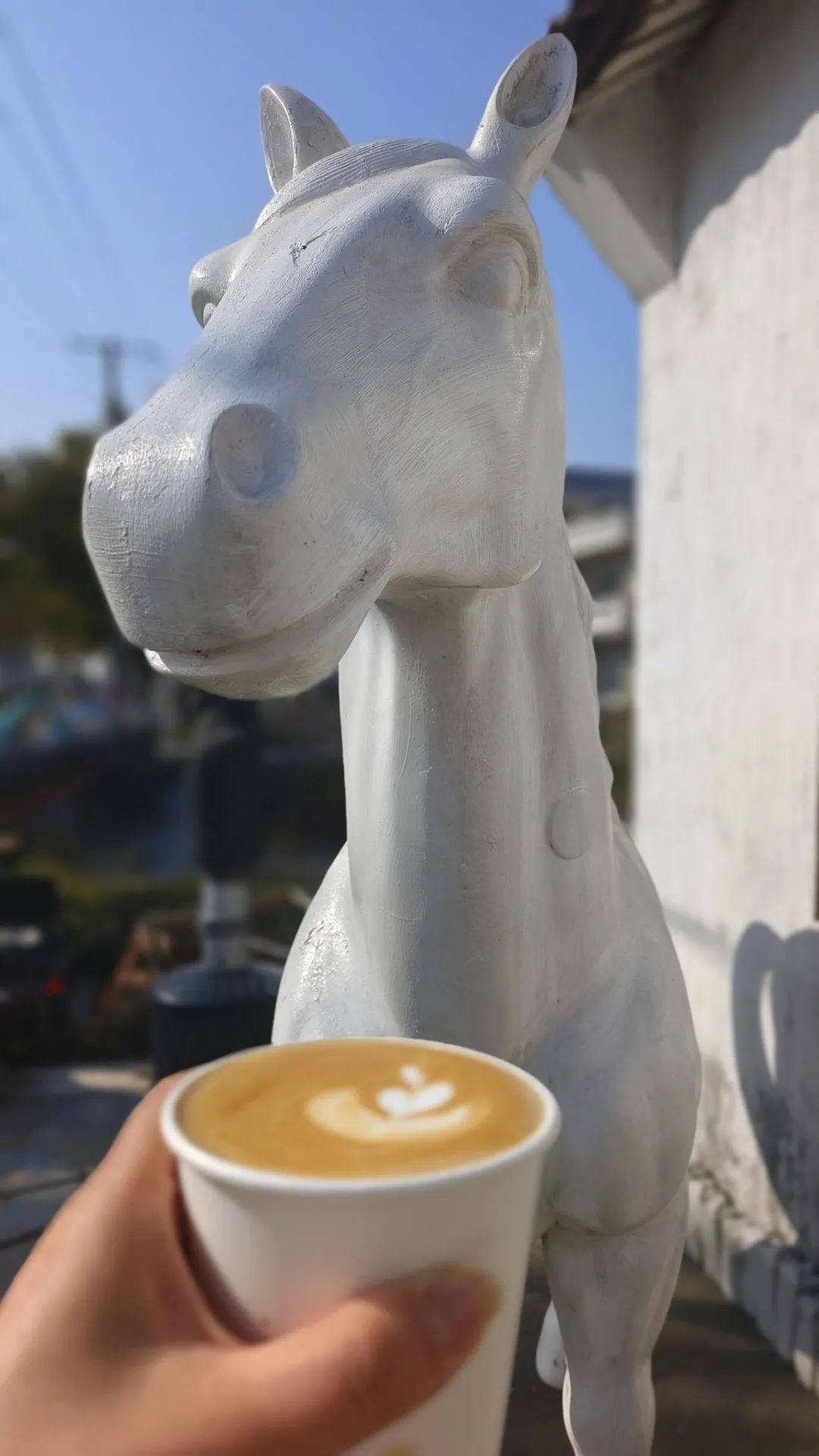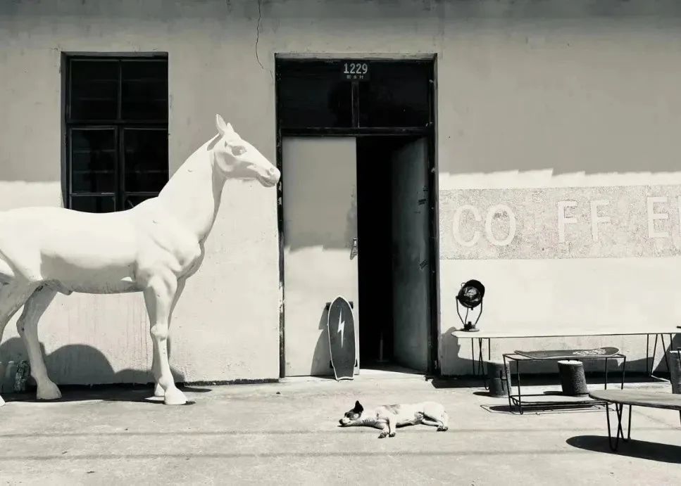 逛累了,还可以去横沙白马咖啡坐坐喝咖啡。蓝天、屋舍、田野、白马、波涛、幻想……白马咖啡就藏在横沙岛如画的风景里,一尊白色马雕塑是它的标志。