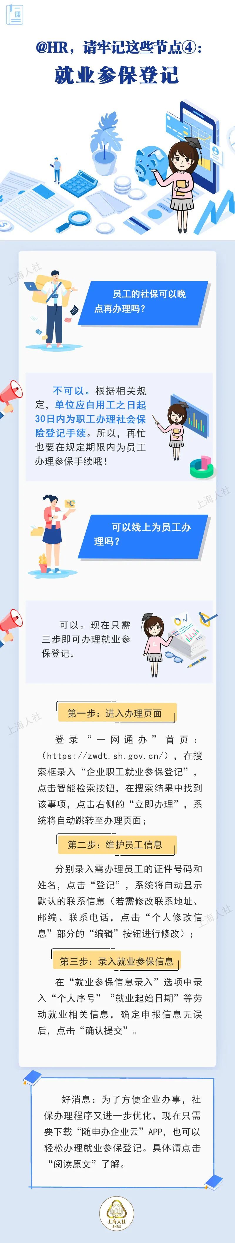 小崔是一家纺织科技公司的HR助理。清明小长假后,公司招了一大批员工,最近集中入职,光签劳动合同就忙得他团团转,小崔想着签合同是大事,社保什么晚点办应该不要紧吧!这位小崔HR的想法有没有问题呢?赶紧来听解答。
