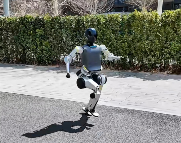 此次比赛,清华通班队的“夸父”也是热门选手之一。据“苏州新闻”消息,身高1.7米、体重55千克的“夸父”由乐聚(苏州)机器人技术有限公司推出,更接近成年人的体型。为了适应长距离奔跑,避免关节等结构的磨损,“夸父”也穿上了跑鞋,与“人形”这一概念相当接近。据了解,“夸父”奔跑速度可超7km/h,通过一个以降低运动耗能为目标的强化学习框架,提升其运动效率、稳定性与地形适应能力,最终实现快速真机迁移和拟人步态稳定奔跑。能在户外低温、大风、地形起伏等复杂情况下,实现30余分钟的持续稳定跑步。