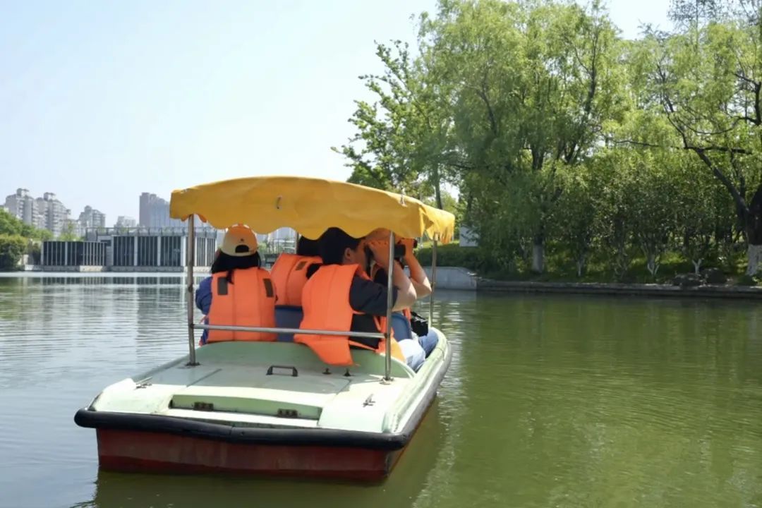 在观鸟实践环节,市民们分组乘上小船,缓缓驶向蓬莱三岛,城市的喧嚣在耳畔渐渐淡去,只剩下各类鸟鸣交织成一曲自然交响乐。当船靠近蓬莱三岛时,市民屏息凝视,用望远镜近距离观察各种鸟类,生怕惊扰了这些灵动的生灵。