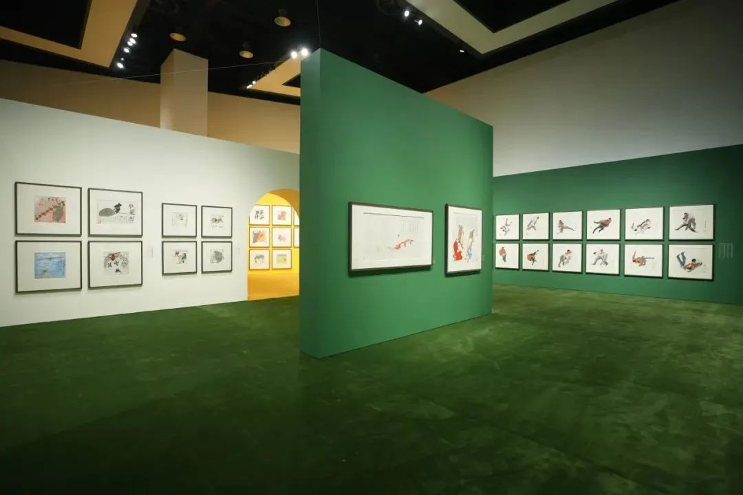 本次展览设计以彩虹色点亮展厅空间的各个部分,呼应黄永玉的名言“为了太阳,我才来到这个世界”,寓意他笔下熠熠生辉的艺术世界,也向他绚烂而富有激情的创作生涯致敬。