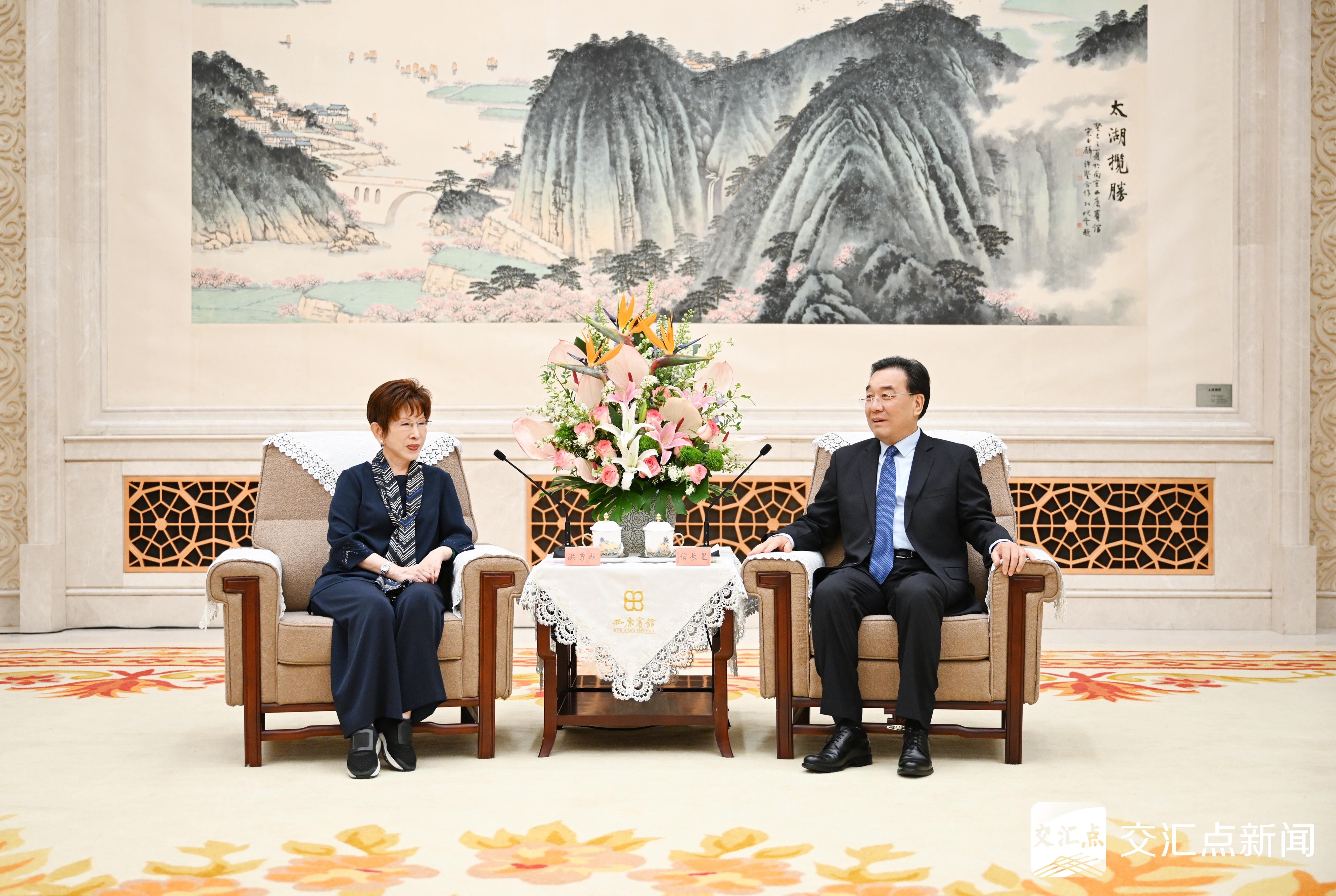 交汇点讯 4月18日,省委书记信长星在南京会见中国国民党前主席洪秀柱一行。