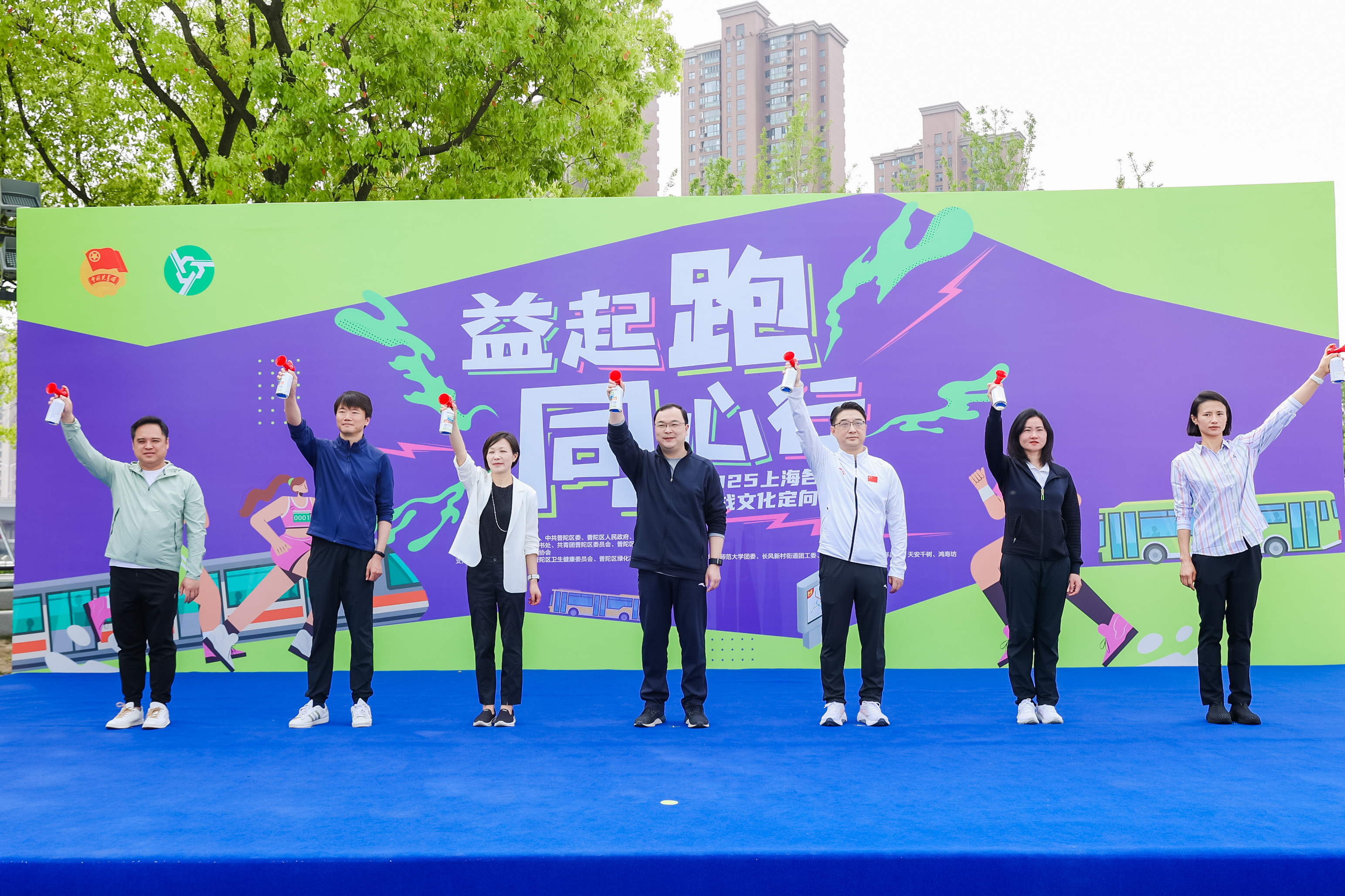 团市委副书记、市青联主席邬斌,市体育局党组副书记、副局长陆檩,普陀区委副书记周艳等领导出席并为公益跑鸣笛开赛。
