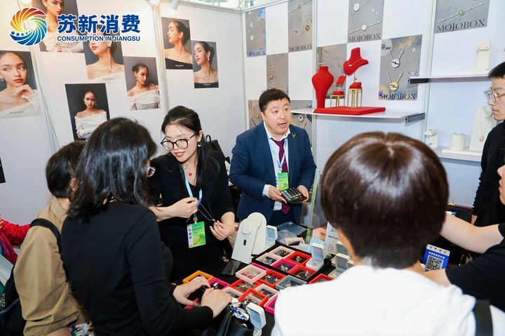 南京威尔斯珠宝有限公司精巧别致的首饰引来不同年龄段消费者咨询试戴。“我们主营各式珠宝,产品之前主要销往英国、美国及东南亚地区。现在遇到的最大困难就是关税挑战,刚刚设计出宝灵球ORBLINK系列,结果美国市场直接被迫暂停了,太突然了。”南京威尔斯珠宝CEO高山向记者介绍,公司成立于2011年,年销售额近2000万元。主打的MOJOBOX是英国注册珠宝品牌,产品此前并不向国内销售,此次困境让他们将视线转向国内。展会上,他们特别带来了国内设计师的国潮系列,以及新品共150多款设计产品,1个半小时内供零售的几乎全部售罄。