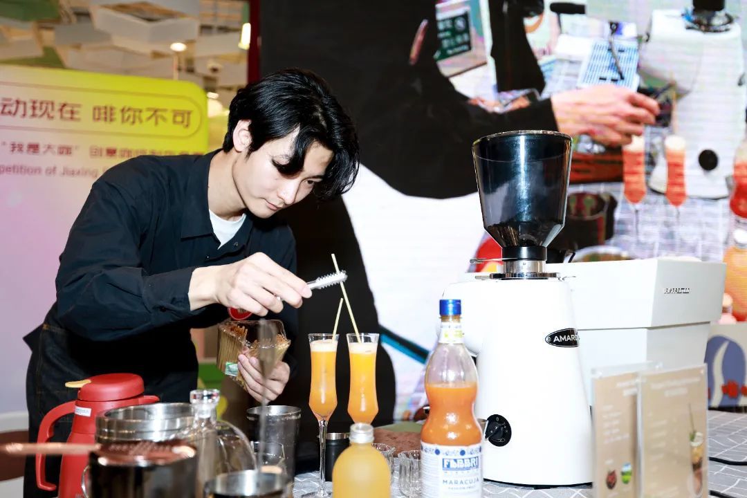 1号选手林志浩率先登场,他从咖啡豆的挑选、研磨,到萃取、融合,再到创意元素的巧妙添加,每一个步骤都展现出专业功底和创意。