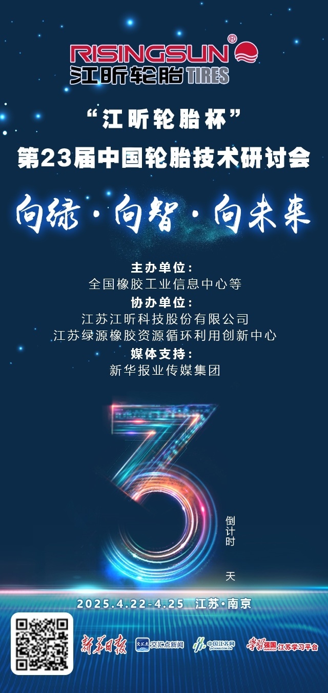 在全球轮胎行业加速向绿色化与智能化转型的背景下,“江昕轮胎杯”第23届中国轮胎技术研讨会将于2025年4月23日—25日在江苏南京召开。这场由全国橡胶工业信息中心、中国化工学会橡胶专业委员会等权威机构联合主办,江苏江昕科技股份有限公司、江苏绿源橡胶资源循环利用创新中心协办,以“向绿·向智·向未来”为主题的行业盛会,将聚焦低碳技术、再生资源、智能设计等行业前沿议题,为国产轮胎全球化布局注入新动能,引领中国轮胎从“制造”向“智造”转型。