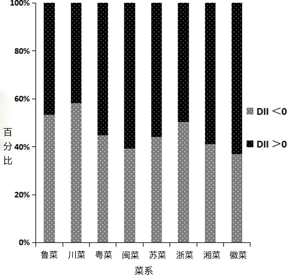 而在DII方面,不同菜系之间也存在显著差异。