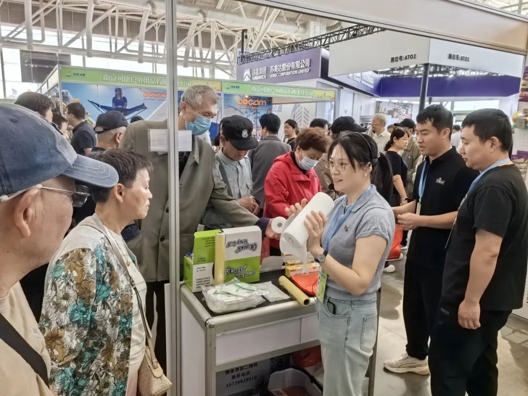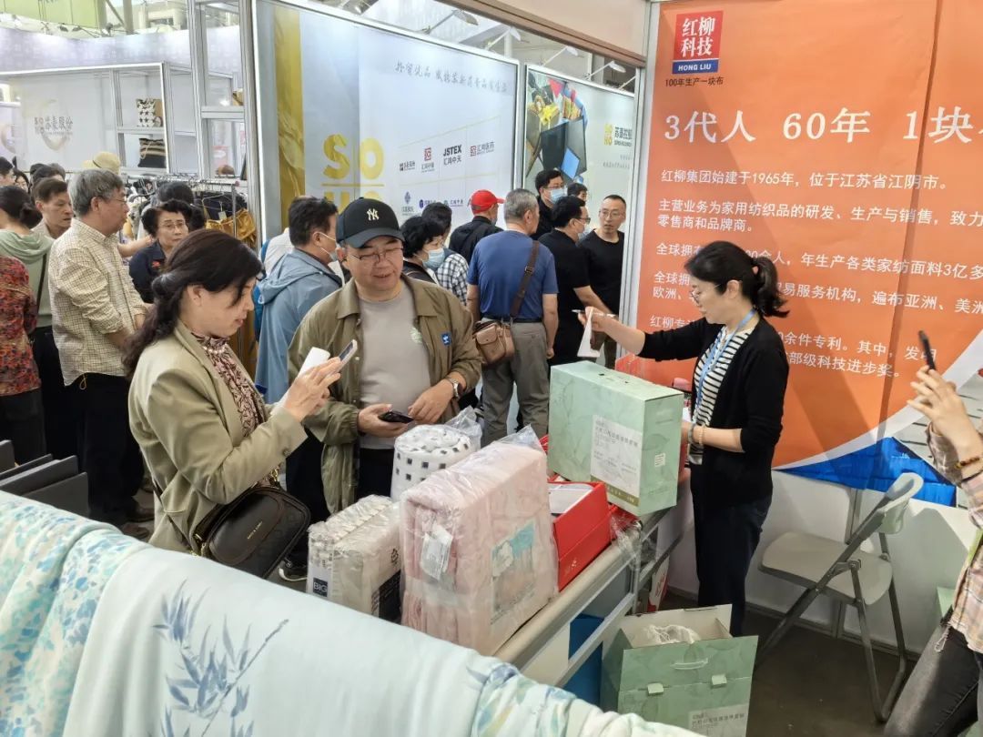 在江阴红柳集团展位上,展出的应季床品“奈特绵凉感被”一经推出便被抢购一空。