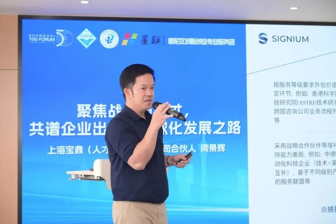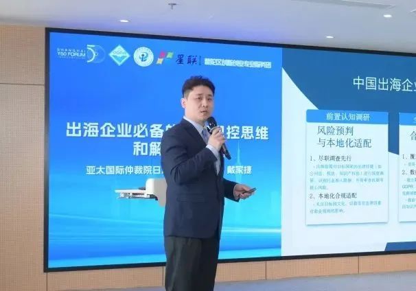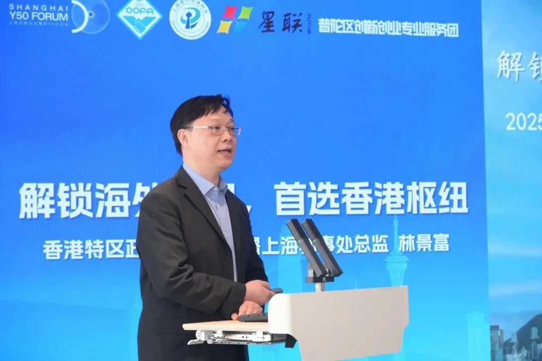 主题分享环节,香港特区政府驻上海经济贸易办事处副主任林景富通过详实数据和积极政策,介绍香港特区如何赋能企业“走出去”。普陀香港联会常务理事、沪港合作数字生态交流中心主任李振业围绕科技能力出海,从科研生态、人才储备等方面,解码企业出海的关键所在。普陀香港联会常务理事、宝鼎(上海)人才服务有限公司合伙人梁景辉聚焦战略与人才,分析企业全球化背景下人才供应链的发展趋势。亚太国际仲裁院日本办公室副代表戴家捷分享出海企业必备的法律风控思维,为中国企业汇入全球蓝海提供仲裁解决方案。