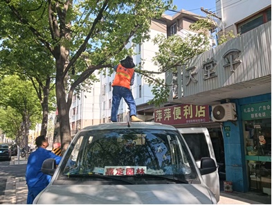 “大风把树枝折断,感觉随时要掉落!” “万一砸下来伤到行人,怎么办?”近日,新成路街道迎园街区网格接到塔城东路沿街商户的信息,称门前的树枝被吹折,随时有掉落砸到人的风险。网格员杨毓云与城运队员宋长青迅速抵达现场,同时将情况上报街道社区管理办,1小时后折断树枝被妥善清理。