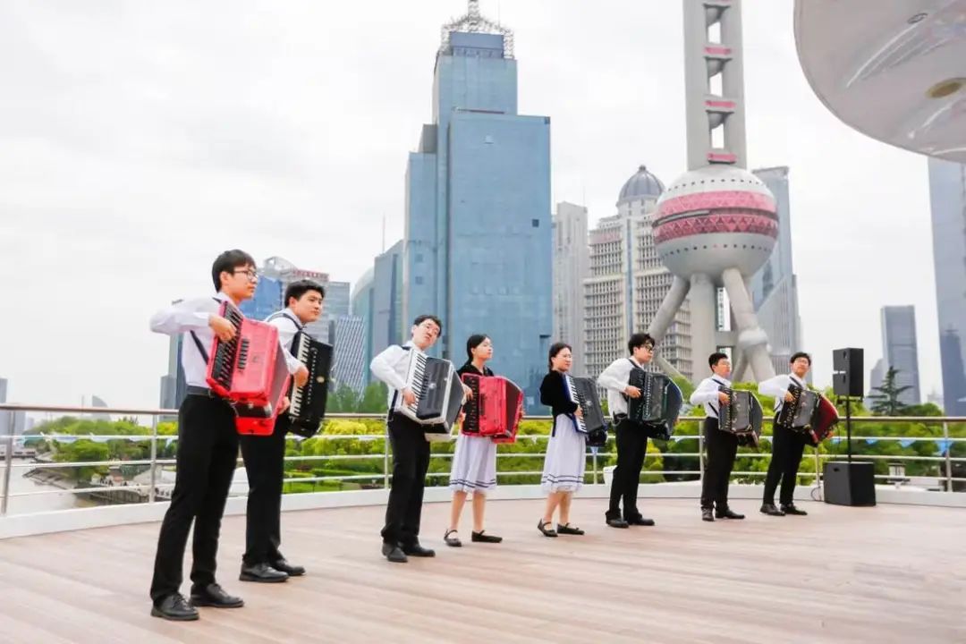 4月19日,随着黄浦江畔东方明珠游船启航,文教结合项目“青春正当时·2025学生城市艺术季”正式拉开序幕。在40分钟的航程中,师生们用舞蹈、小号、民乐和弦乐等演奏在滨江岸线绘制出一幅流动的美育画卷。