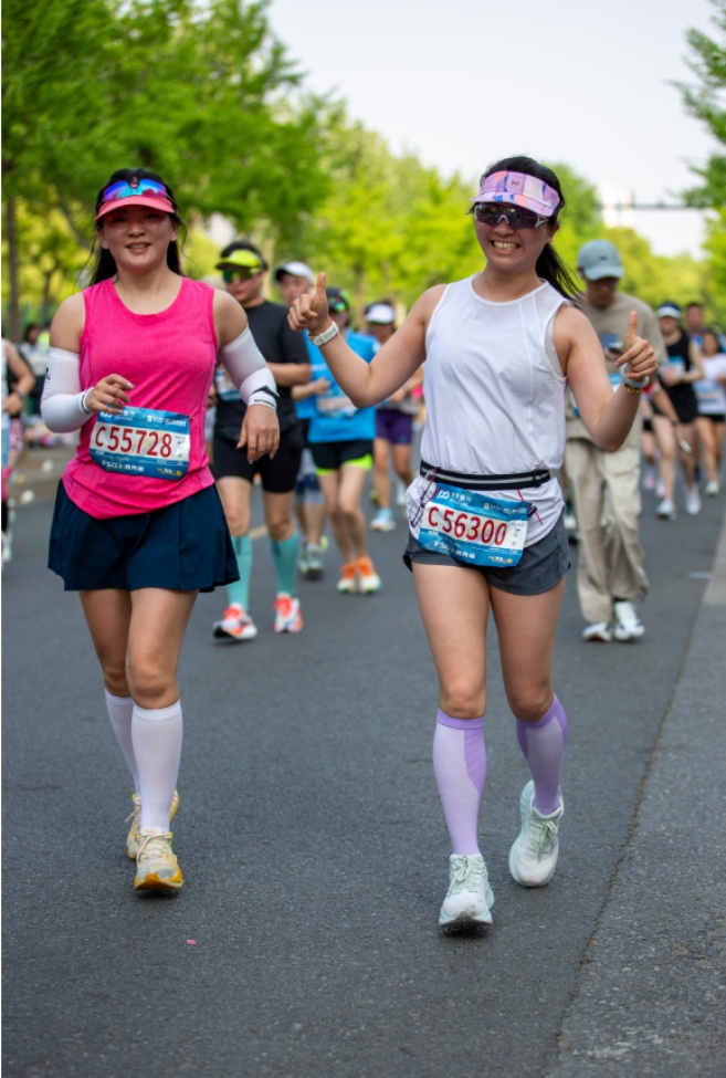 赛事当天气温较高,跑者体感较为炎热,组委会充分考虑跑者参赛体验,在赛道9公里、14公里、18公里处配备了三处冰站,在8公里、12公里、14公里、16公里、18公里、19公里及20公里处设置了七处喷淋站,参赛者可以取用适量冰块进行物理降温,以达到迅速恢复体力的效果。