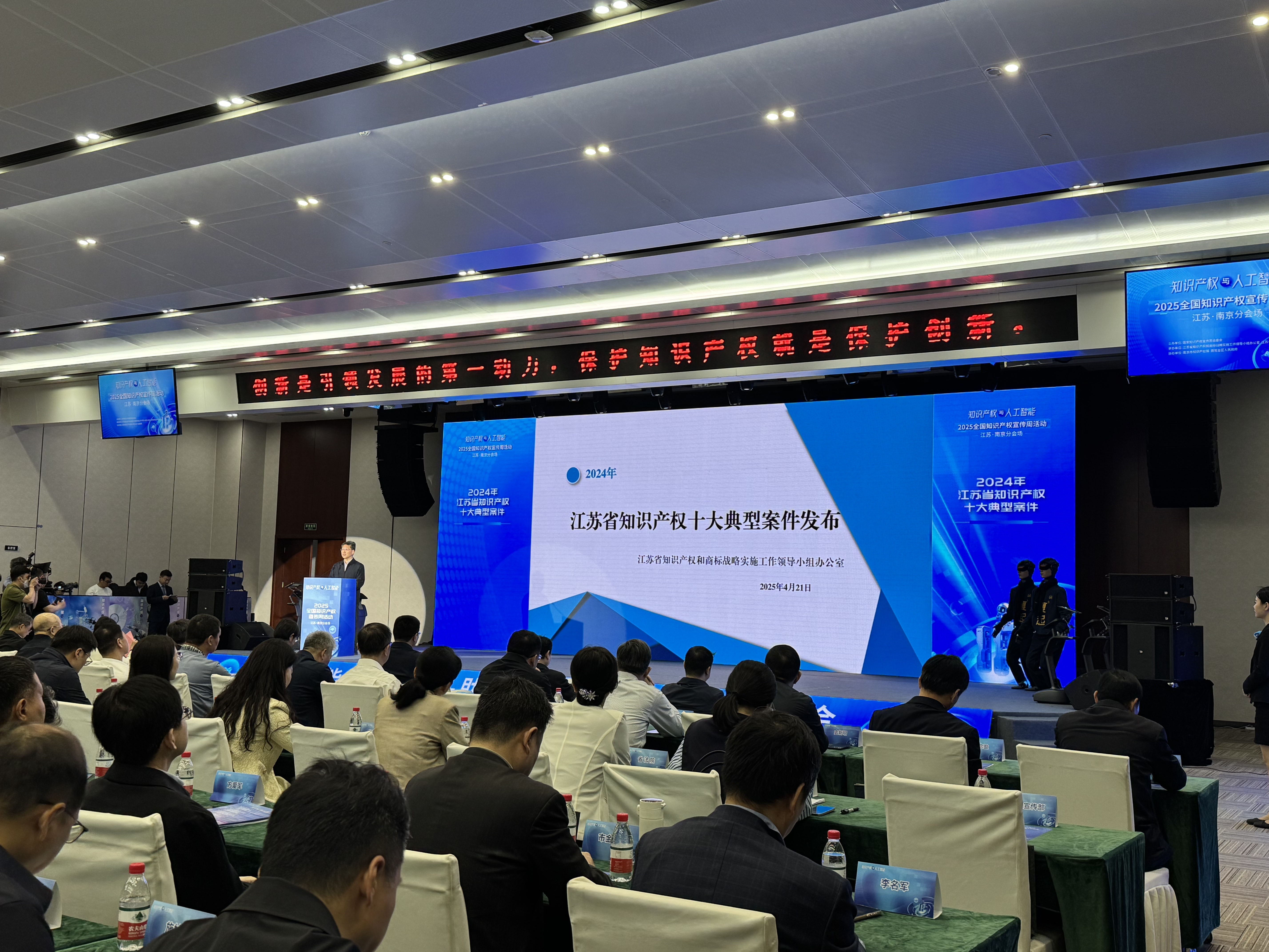 交汇点讯 全国网络影视平台“盗链第一大案”、全国首例局部外观设计行政保护案、全国首例侵犯美术作品著作权犯罪案……4月21日,在2025年全国知识产权周江苏分会场活动现场,江苏省知识产权和商标战略实施工作领导小组办公室发布“2024年江苏省知识产权十大典型案件”,涉及专利、商标、商业秘密、著作权、不正当竞争等领域,其中部分案件为新领域新业态下出现的新型侵权案件。