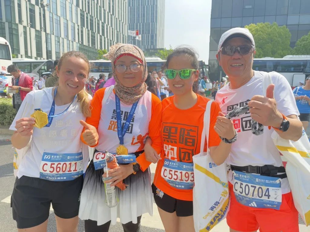 障跑者马神鹰(右二)在上海半马刷了PB,而来自德国的陪跑员莉娜则是收获了一份温暖和感动