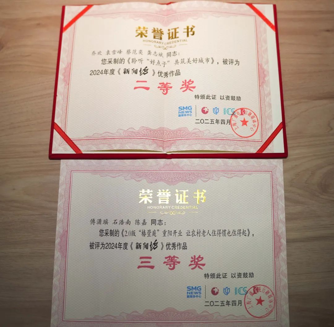 由奉贤区融媒体中心记者采写制作的作品《聆听“好点子”共筑美好城市》《2.0版“椿萱庭”重阳开业 让农村老人住得惯也住得起》分获2024年度《新闻坊》优秀作品。