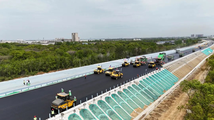 4月16日,无锡至宜兴高速公路雪堰枢纽至西坞枢纽段扩建工程排水沥青路面上面层试验段施工完成。