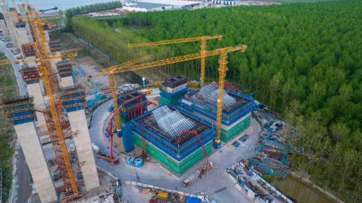 4月17日,张靖皋长江大桥北航道桥南锚碇锚体第9层混凝土浇筑完成,标志着张靖皋长江大桥北航道桥南锚碇锚体建设过半。