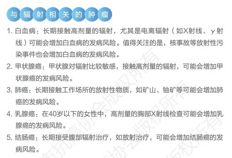辐射与肿瘤:辐射无从不在,我们在谈论辐射时,必须要掌握辐射剂量的限值,不能脱离剂量来谈毒性。大剂量的辐射才会导致肿瘤风险的增加。正常医疗的诊断和治疗过程中使用的辐射,剂量较低且严格控制在安全范围内,致癌风险极低,对患者的益处远大于潜在风险,不能因噎废食。