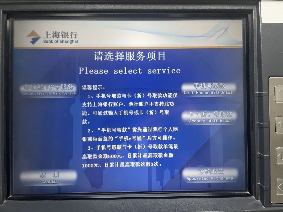 上海银行徐汇支行无卡存款功能已取消,可通过手机号或卡(折)号取款