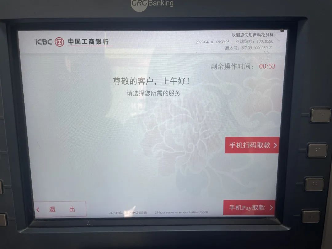 中国工商银行徐汇支行无卡存款功能已取消,可手机扫码取款