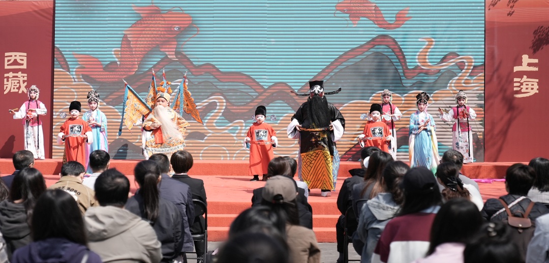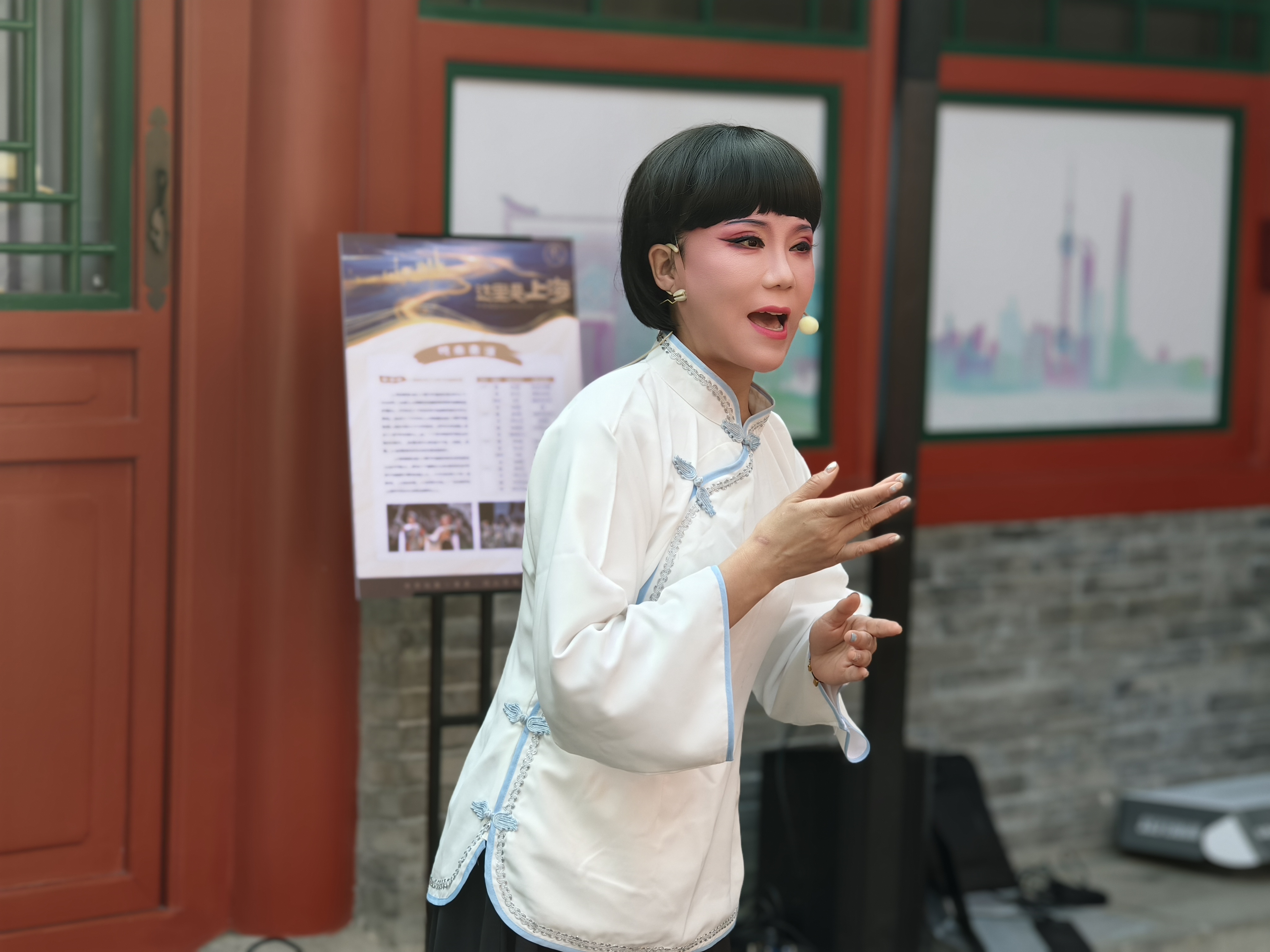 丝竹交响展厅前,上海越韵宜川青年越剧团定期演绎沪剧、锡剧、越剧等江南剧种经典选段,让现场观众在“吴侬软语”的婉转韵律中感受传统文化的当代传承。