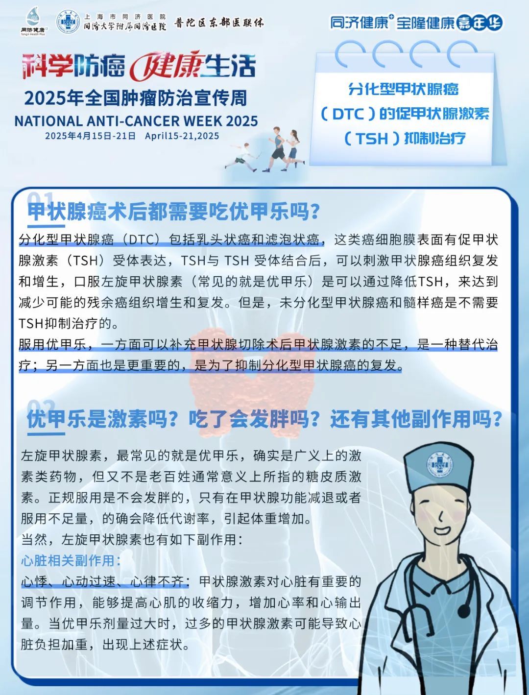 同济大学附属同济医院积极响应国家号召,在4月17日及4月18日举行了科普直播,汇聚多学科权威专家,为大家解锁了防癌抗癌核心知识!