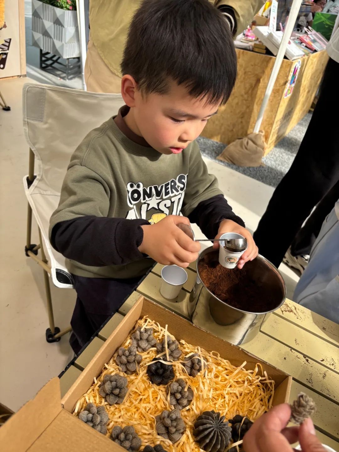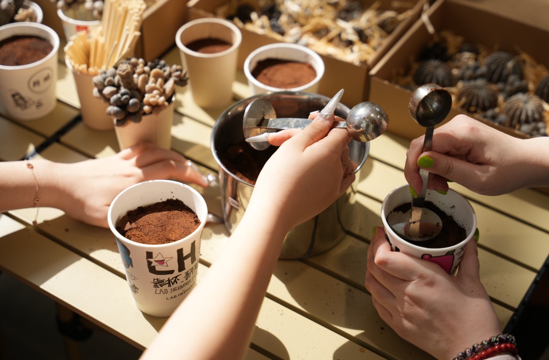 工作坊以“循环再利用”为核心理念,巧妙地将平日被忽视的咖啡渣和一次性咖啡杯转化为独具匠心的手工艺术品。参与者们在专业导师的指导下,化身“绿色创客”,沉浸于手工创作的乐趣中,感受环保与艺术碰撞的独特魅力。