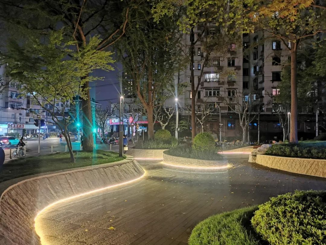 丰富多彩的绿植、曲径通幽的园路、温馨雅致的灯光、舒适的木制座椅,焕新的云和花园为来往的市民提供了片刻休憩,传递着街区的温暖与和谐。