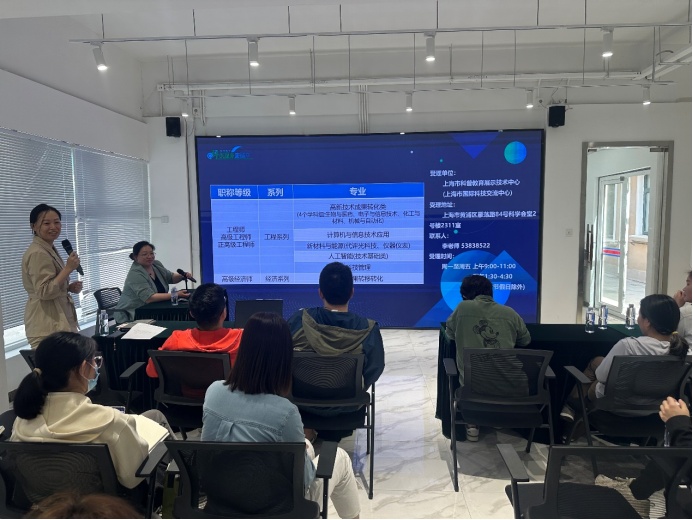 本次职称申报宣讲专场由上海市科学技术协会指导,上海市科普教育展示技术中心(上海市国际科技交流中心)分别与上海市长宁区科学技术委员会、上海市长宁区科学技术协会,上海市松江区科学技术协会联合主办。