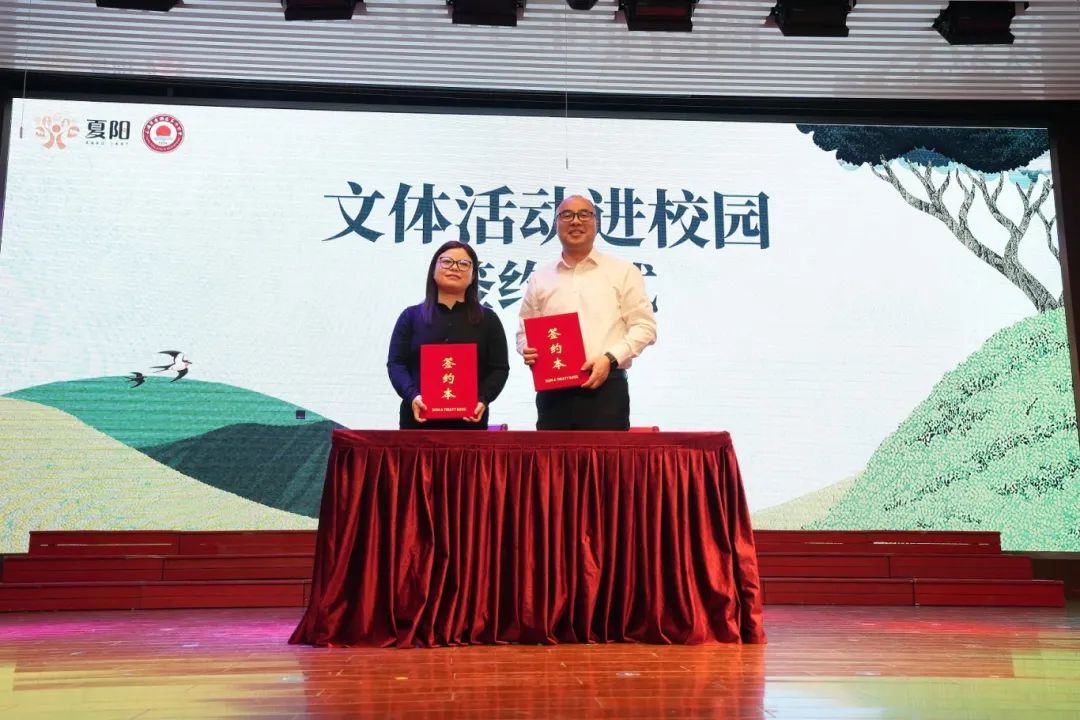 活动中,青浦区东方中学与夏阳街道社区文化活动中心进行校社合作结对签约,未来双方将进一步整合资源,推动校园文化建设迈向新高度,为同学们带来更丰富的阅读和文体活动。大隐书局和江南书局共同为学生代表赠书,寓意知识的火种照亮同学们前行的道路。