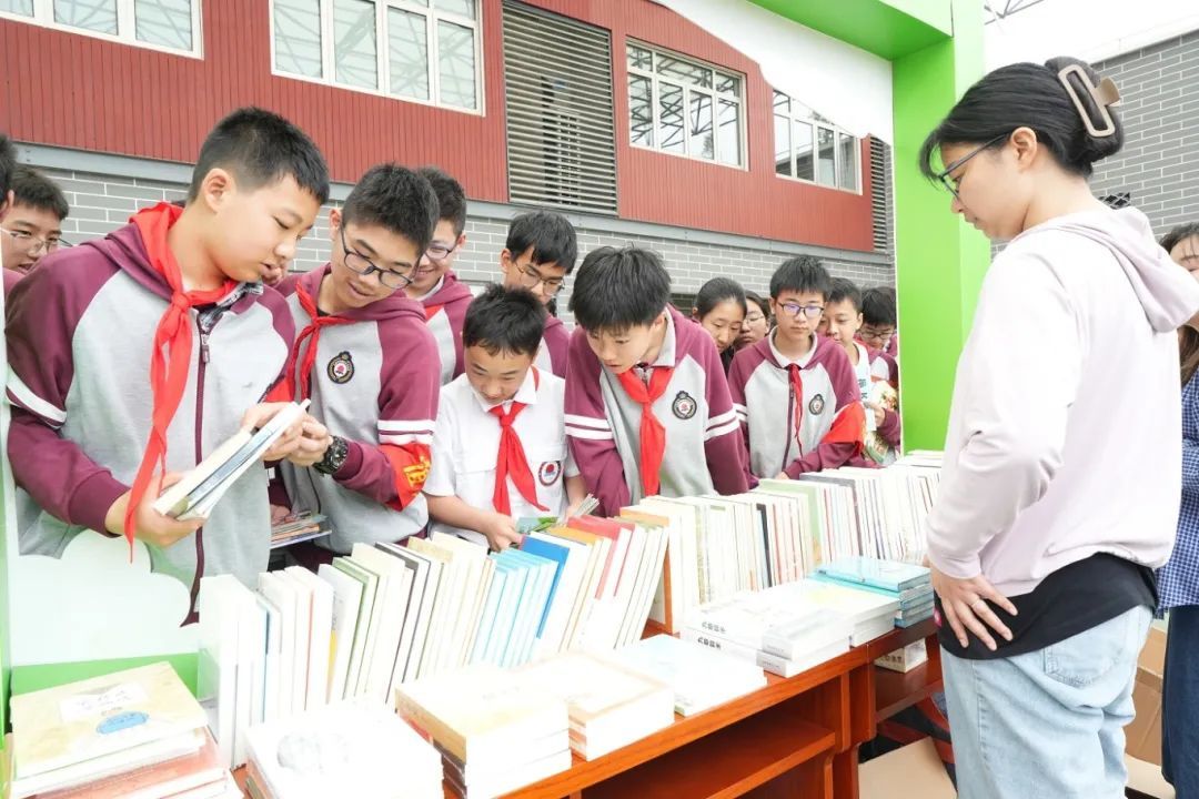 场外的换书市集人头攒动,翻页声、交谈声、欢笑声此起彼伏,交织成一首关于阅读与成长的青春乐章。两张长桌分列两侧,一桌铺满崭新书籍,从科普读物到文学经典琳琅满目;另一桌则摆满小巧玲珑的多肉植物,绿意盎然,生机勃勃。摊位上,书籍与绿植的交换不仅让知识流动起来,更让环保与共享的理念悄然扎根。“我用三本旧书换了《物种起源》!”七年级学生陈浩宇告诉记者,“这些书放在家里很久了,能换成新书特别有意义,还能探索更多未知的知识。”