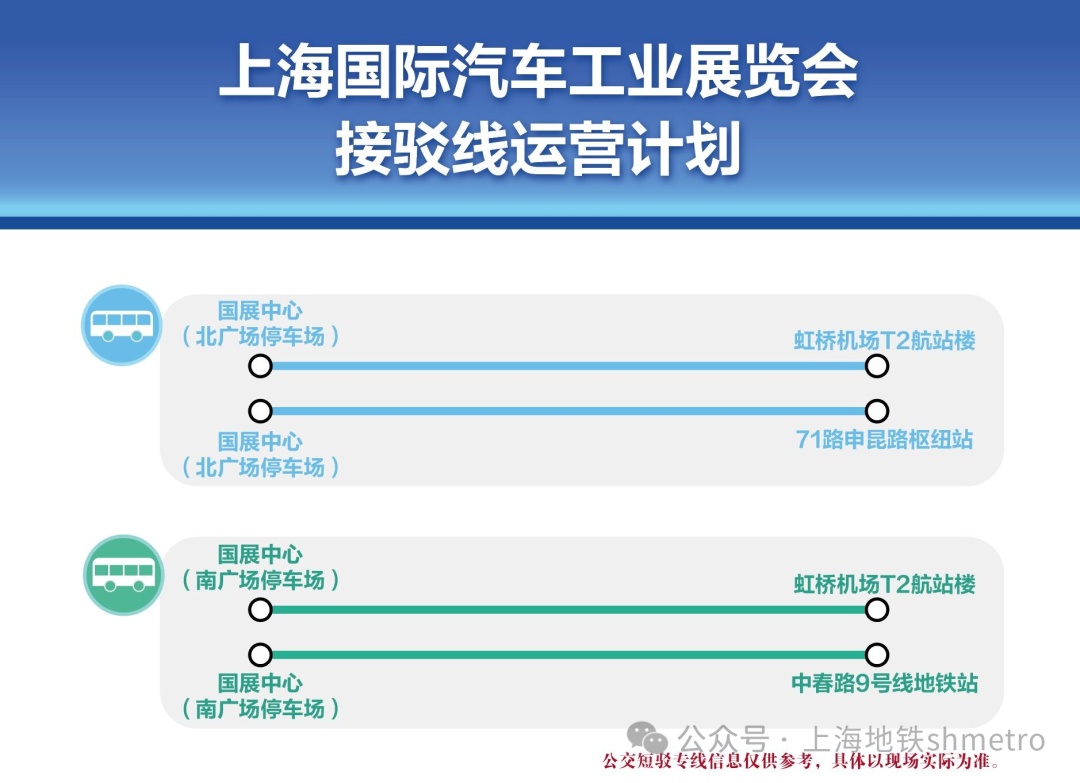 据悉,第二十一届上海国际汽车工业展览会会期间,相关单位将专设公交接驳专线:
