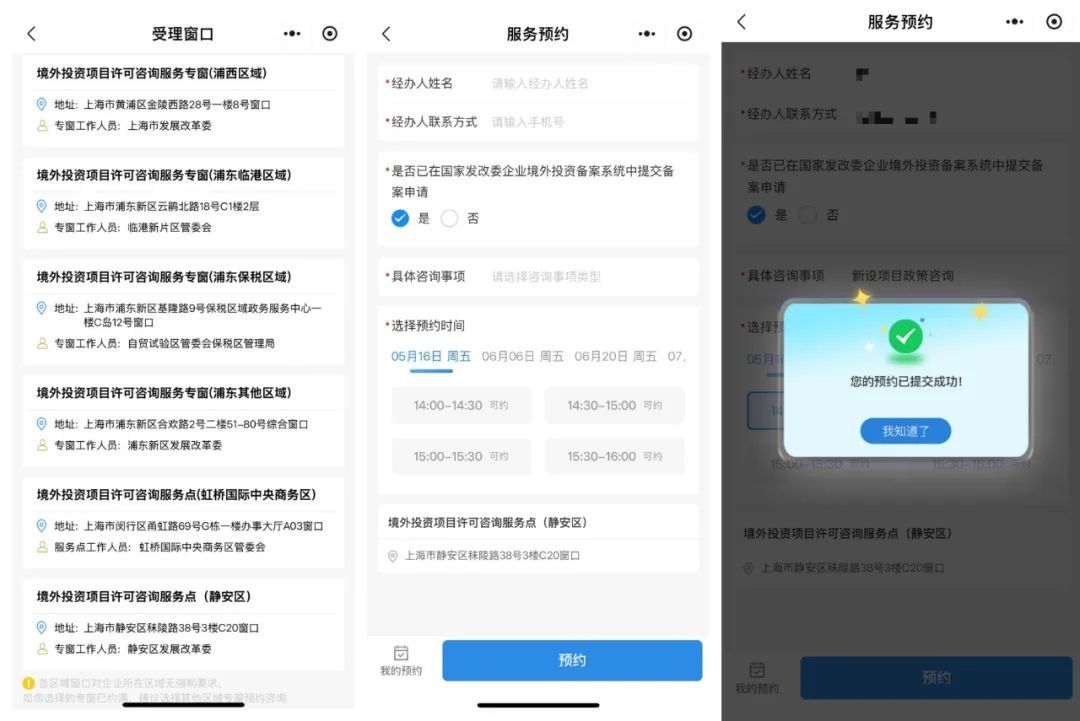 为更好服务企业境外投资需求,近日,静安区设立上海市中心城区首个境外投资项目许可咨询服务点,现已开通线上预约,并将于5月16日正式线下开放,为企业提供境外投资政策解读、流程指导等面对面服务,进一步畅通企业“出海”通道。