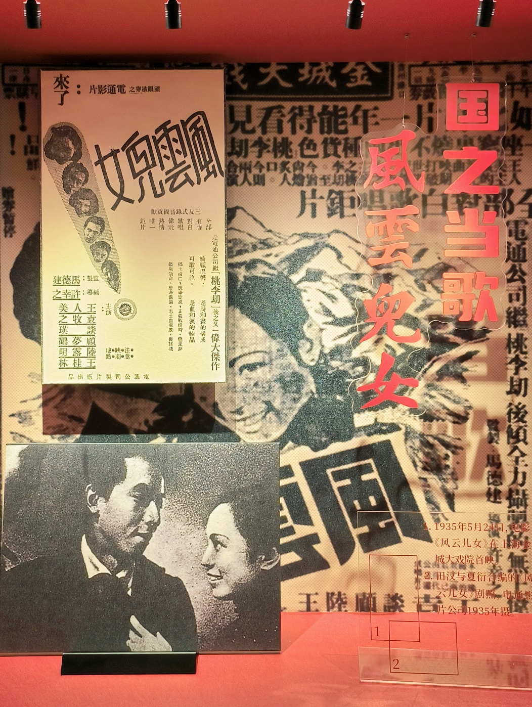 今年是《义勇军进行曲》诞生90周年。从战歌到国歌,《义勇军进行曲》和徐汇有深厚的渊源。1935年5月,《义勇军进行曲》在百代小楼进行唱片灌制。同月,由许幸之执导,田汉、夏衍编剧的电影《风云儿女》公映,作为电影主题曲,《义勇军进行曲》传唱大江南北、长城内外。为纪念《义勇军进行曲》诞生90周年,百代小楼与徐家汇书院梦幻联动,以创意满满的展陈形式,全方位呈现《义勇军进行曲》从诞生到传唱不衰到成为国歌的光辉历程。