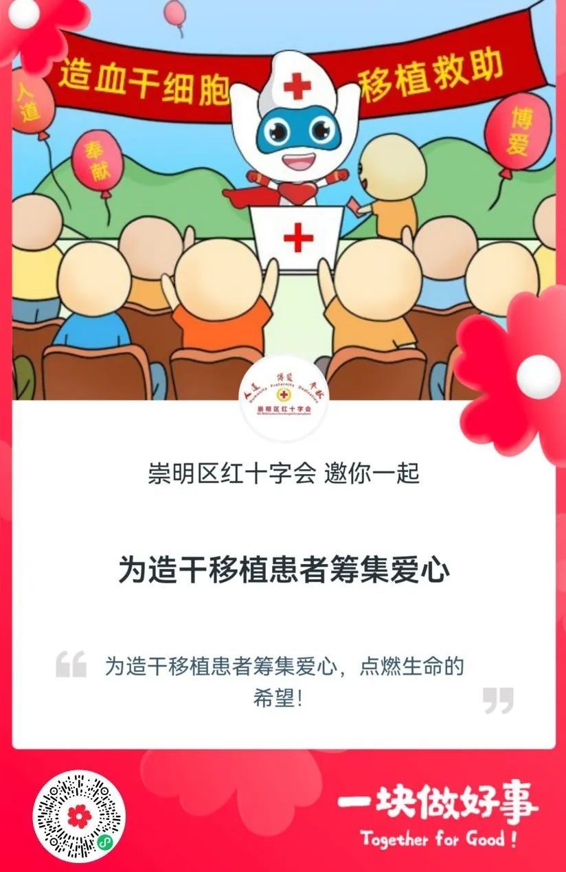 为纪念第78个“世界红十字日”暨第三个上海市红十字博爱周,弘扬“人道、博爱、奉献”的红十字精神,进一步优化人道资源供给,提升人道资源动员能力,倡导“人人皆可参与”的公益理念,崇明区红十字会积极开展2025年“5·8人道公益日”活动,依托“腾讯公益”平台,开展“爱心护你成长——困难家庭学生助学项目”和“点燃生命的希望——造血干细胞移植救助项目”线上筹款,通过网络众筹方式募集公益资金。在此,我们呼吁社会各界爱心人士自愿捐款。您的每一次捐助,都是对困难家庭学生和造血干细胞移植患者的巨大支持! 即日起至5月20日 (一)微信扫描“一起捐”二维码,进入页面,点击捐一笔。