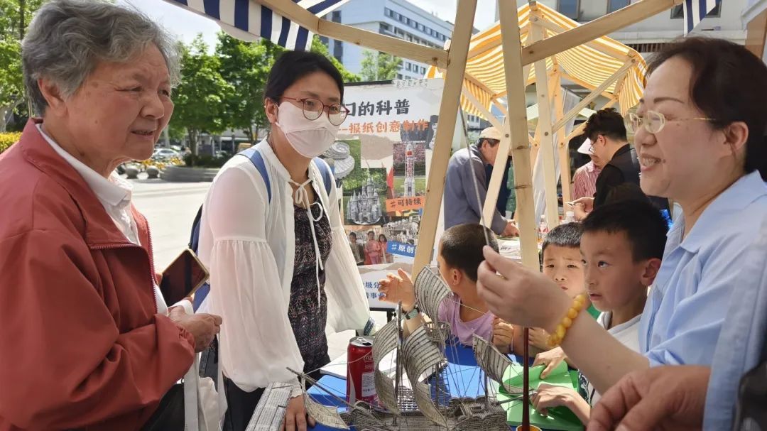 学员为市民们热情讲解纸艺作品
